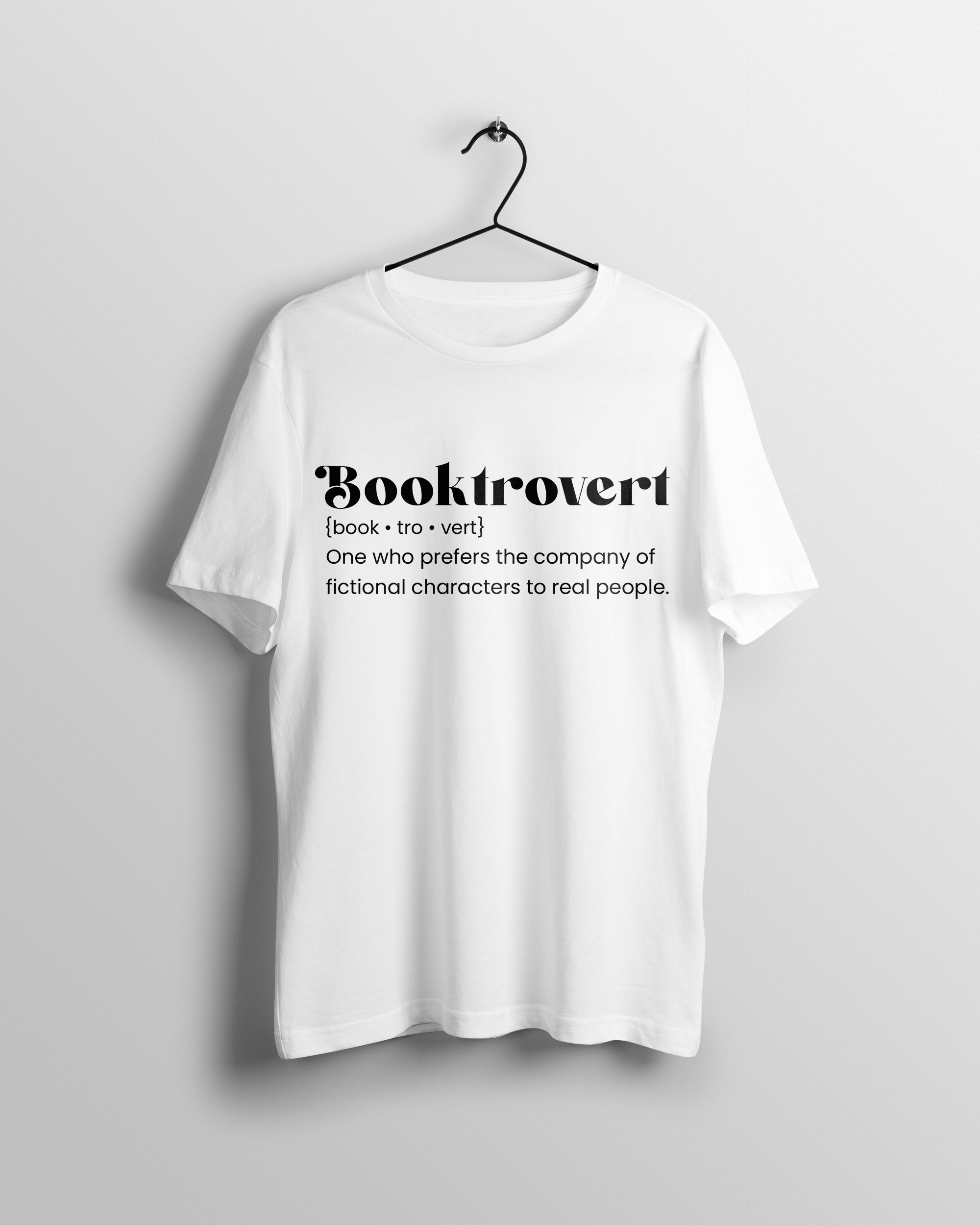 - Bold Definition Design – Reads: “Booktrovert {book-tro-vert} One who prefers the company of fictional characters to real people.”