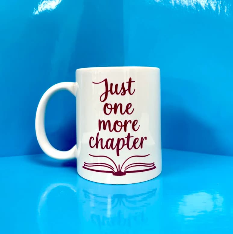 Snuggle up, sip, and keep turning pages! Get your Just One More Chapter Mug today and make every reading session cozier!