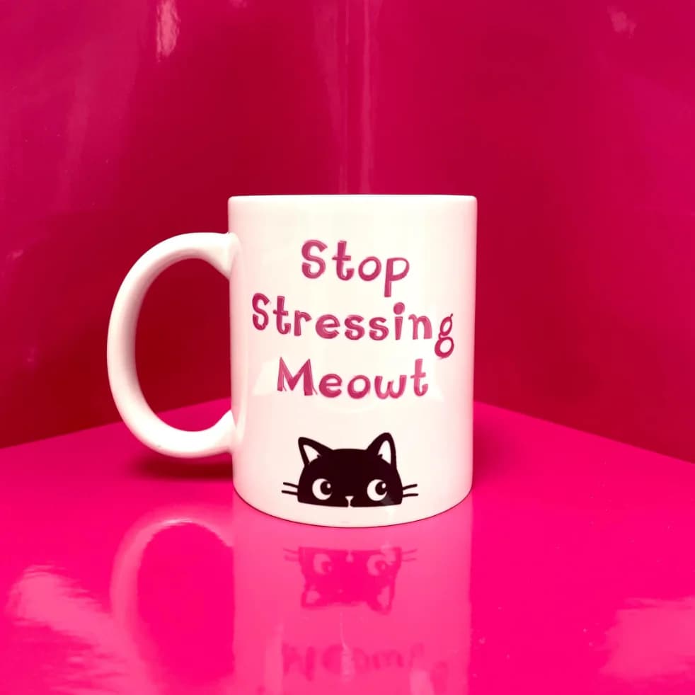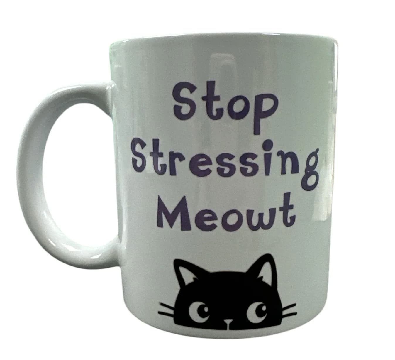 Add a playful touch to your morning routine with our 11oz mug that boldly states, “Stop Stressing Meowt.” Perfect for cat lovers and anyone who appreciates a good pun, this ceramic mug brings a smile to your face with every sip. Designed for durability and comfort, it features a smooth, glossy finish and a comfortable handle for easy grip. Whether you’re enjoying your favorite coffee, tea, or a soothing herbal blend, this mug is microwave and dishwasher safe for effortless use. It makes a fantastic gift for friends, family, or yourself—because we all need a little reminder to take it easy and enjoy the purrs in life!